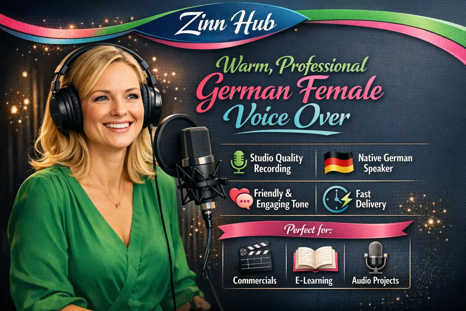 If you need a female vocal recording in German or English with a natural European accent, I'm here to help you make your message resonate through Zinn Hub.