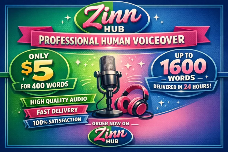 record professional human voiceover 400 words, 5 USD, up to 1600 words in a day