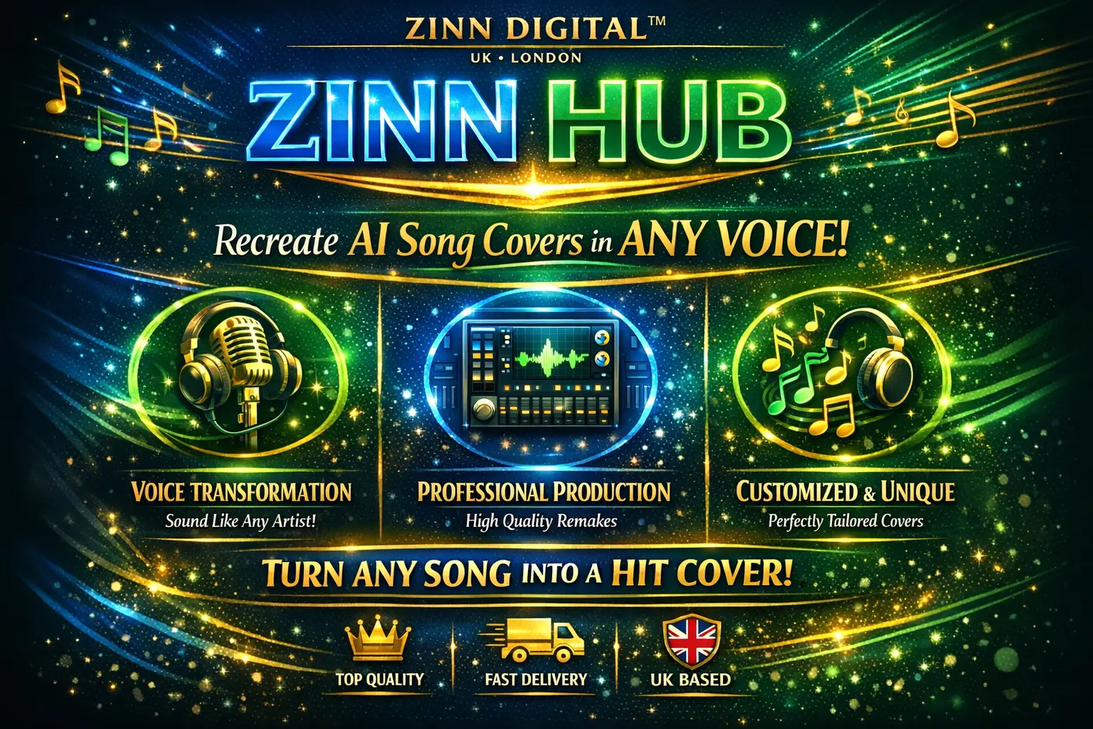 Our goal is to take an AI generated idea and turn it into something that sounds real, full, and high quality. We can remake songs from scratch, rebuild instrumentals, create covers in the style of different artists, or give your track a new, upgraded sound that matches your vision perfectly. Based in London, England, we bring years of expertise to every project.