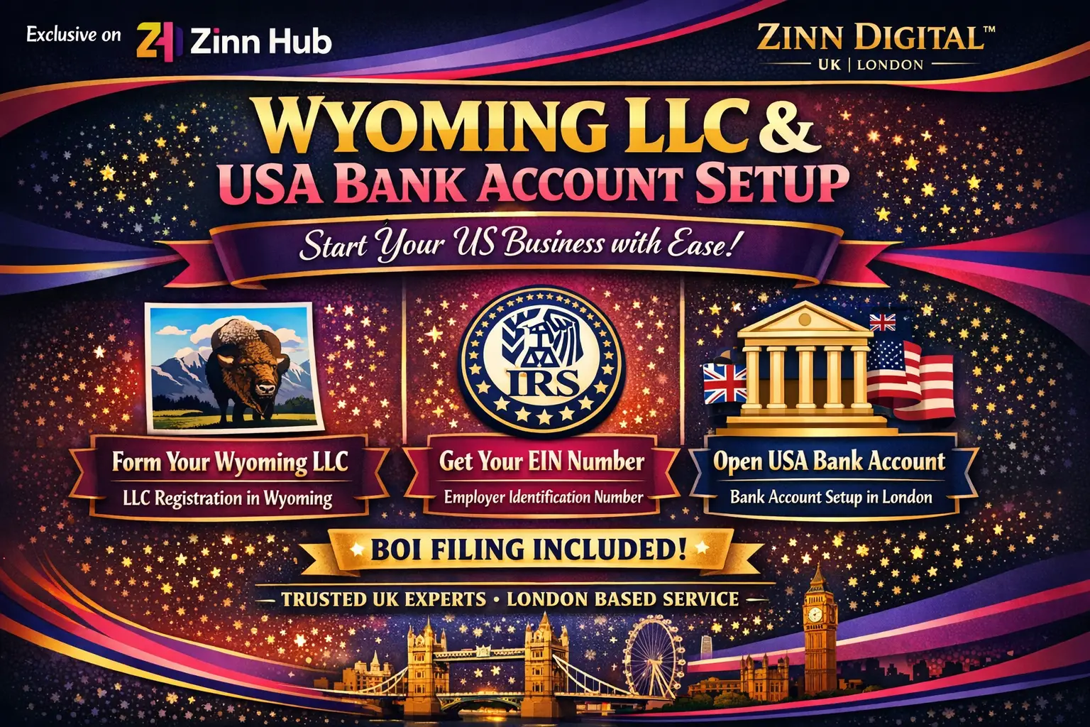 Looking to start your US business? Zinn Digital ™ specialises in company registration and business setup, making the process seamless and stress-free. **Here's what we offer:**