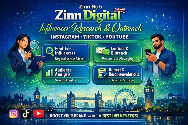 - Influencer Outreach Service : Executed by reaching out to influencers through our London-based agency email or by contacting influencers directly using your business email.