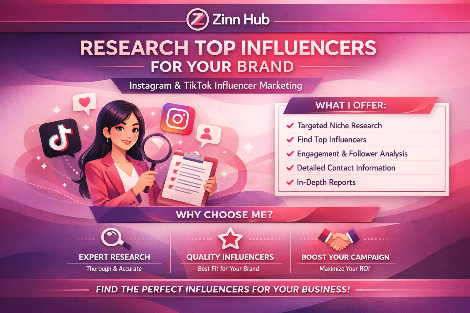 Hello, Have you ever been looking for someone to conduct research and find the best Instagram and TikTok influencers specific to your niche?