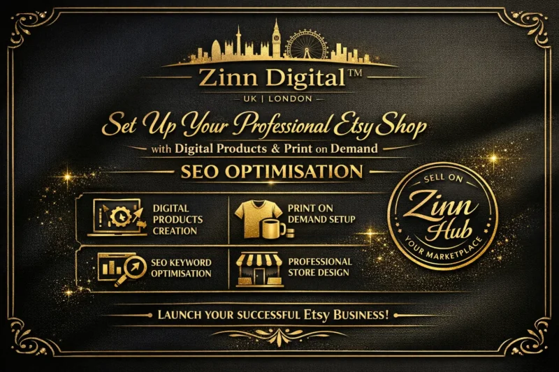 Don't let your Etsy shop remain invisible. Take decisive action towards success with our expert services based in London, England. Contact Zinn Digital™ now to arrange a consultation and start boosting your online presence.