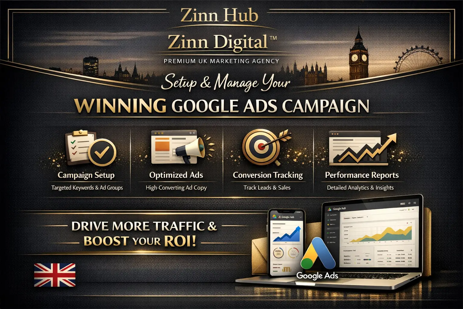 At Zinn Digital™, we've successfully implemented Google Ads strategies for numerous businesses across London, England, helping them increase sales, boost revenue, and even elevate their websites to top positions in organic search results. Begin with our Silver package to witness transformative results for your business.
