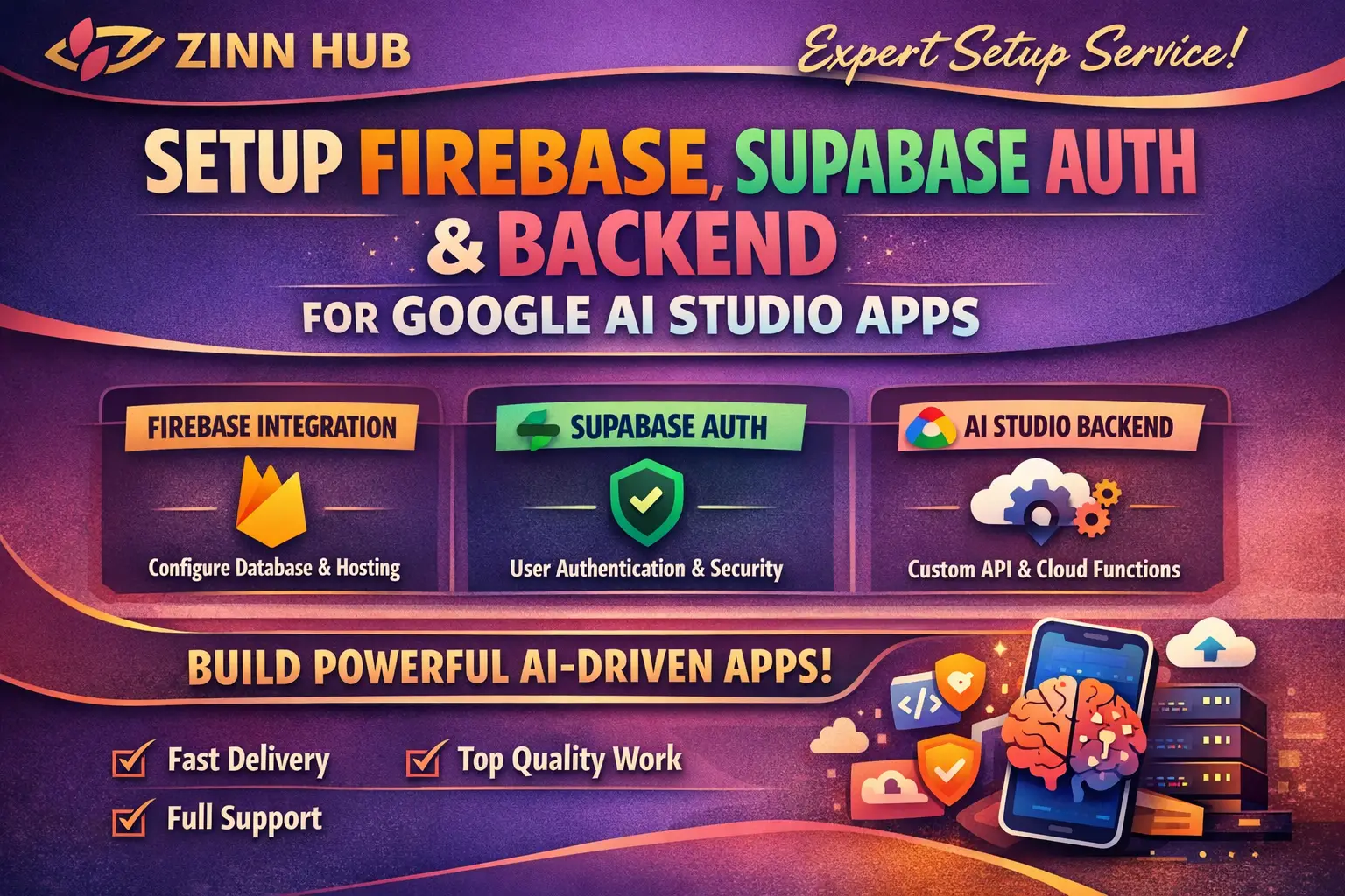 We will set up and integrate Firebase or Supabase with your Google AI Studio app, including authentication, database, and backend logic.