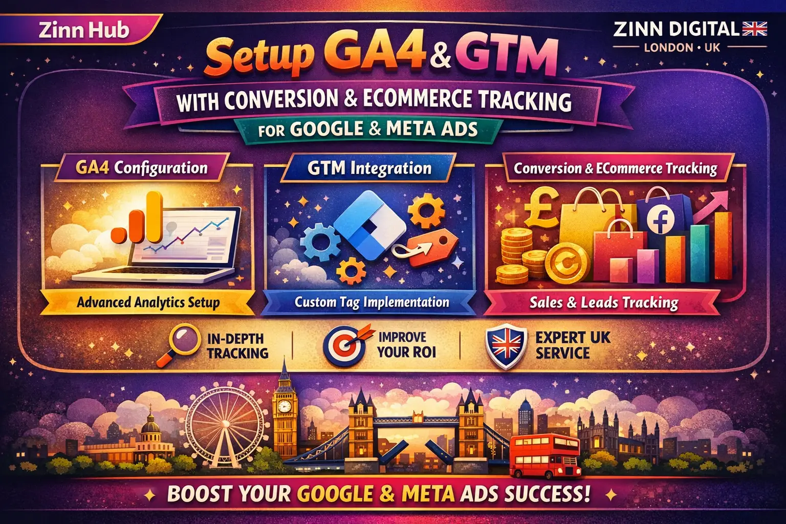 Boost ROI with expert GA4 and GTM setup for Google and Meta Ads Conversion Tracking.
