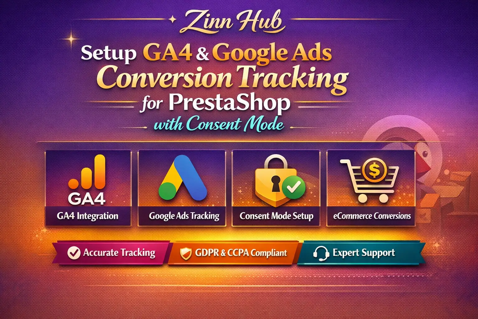 As a certified Google Ads and analytics expert based in London, England, Zinn Digital ™ will deploy a privacy-compliant, high-precision GA4 and Google Ads tracking setup tailored for PrestaShop.