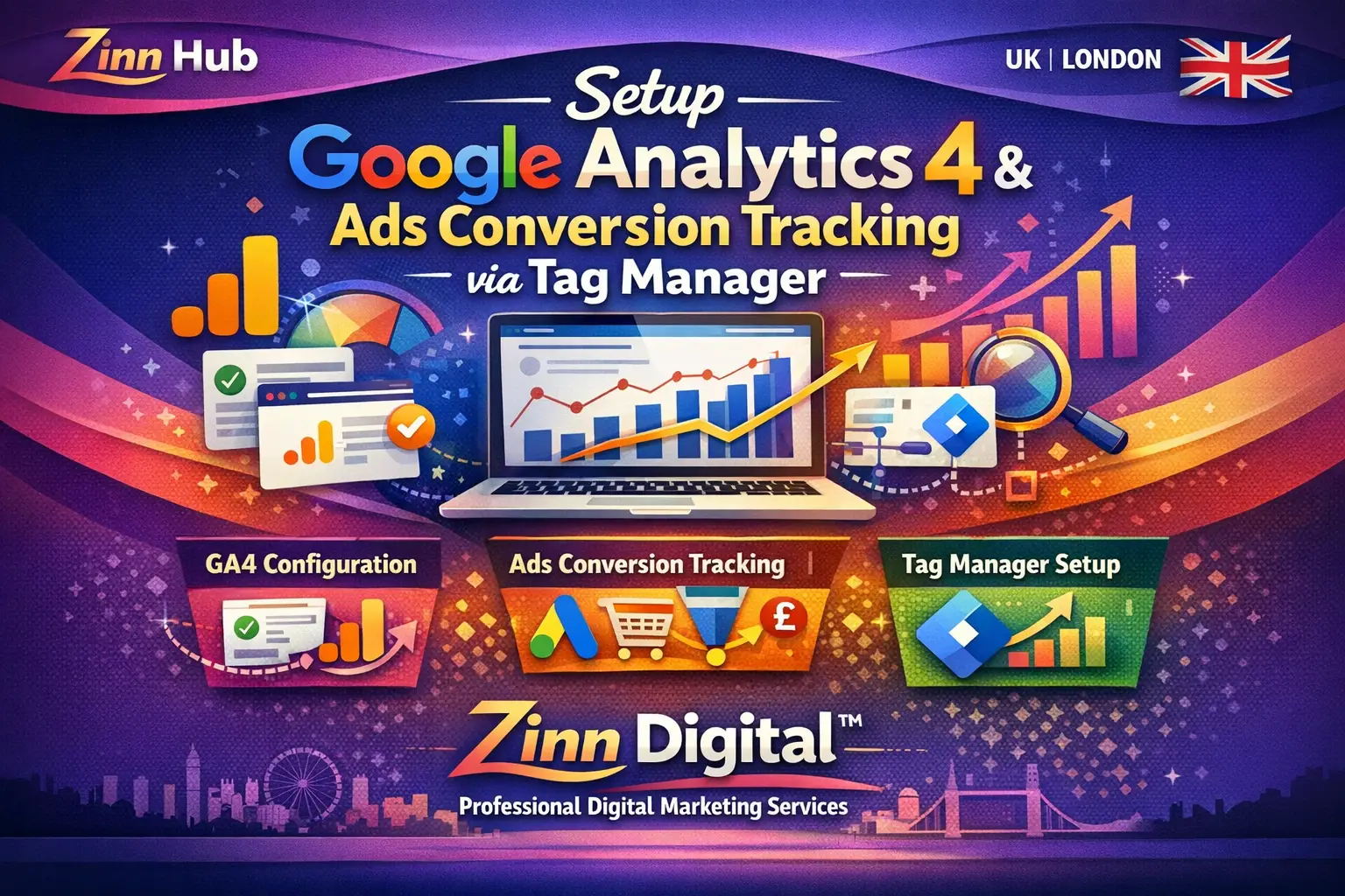We're Certified Google Analytics Experts based in London, England, and Zinn Digital ™ will help you setup Google Analytics 4 (GA4) Events, Google Ads conversion tracking, and Dynamic Re-marketing through Google Tag Manager (GTM).