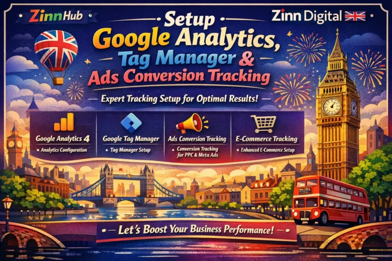 Then you are in the right place. Zinn Digital ™, based in London, England, will set up Google Analytics 4, Google Tag Manager and Google Ads Conversion Tracking on your Shopify, WooCommerce, Wix or any custom-built website.