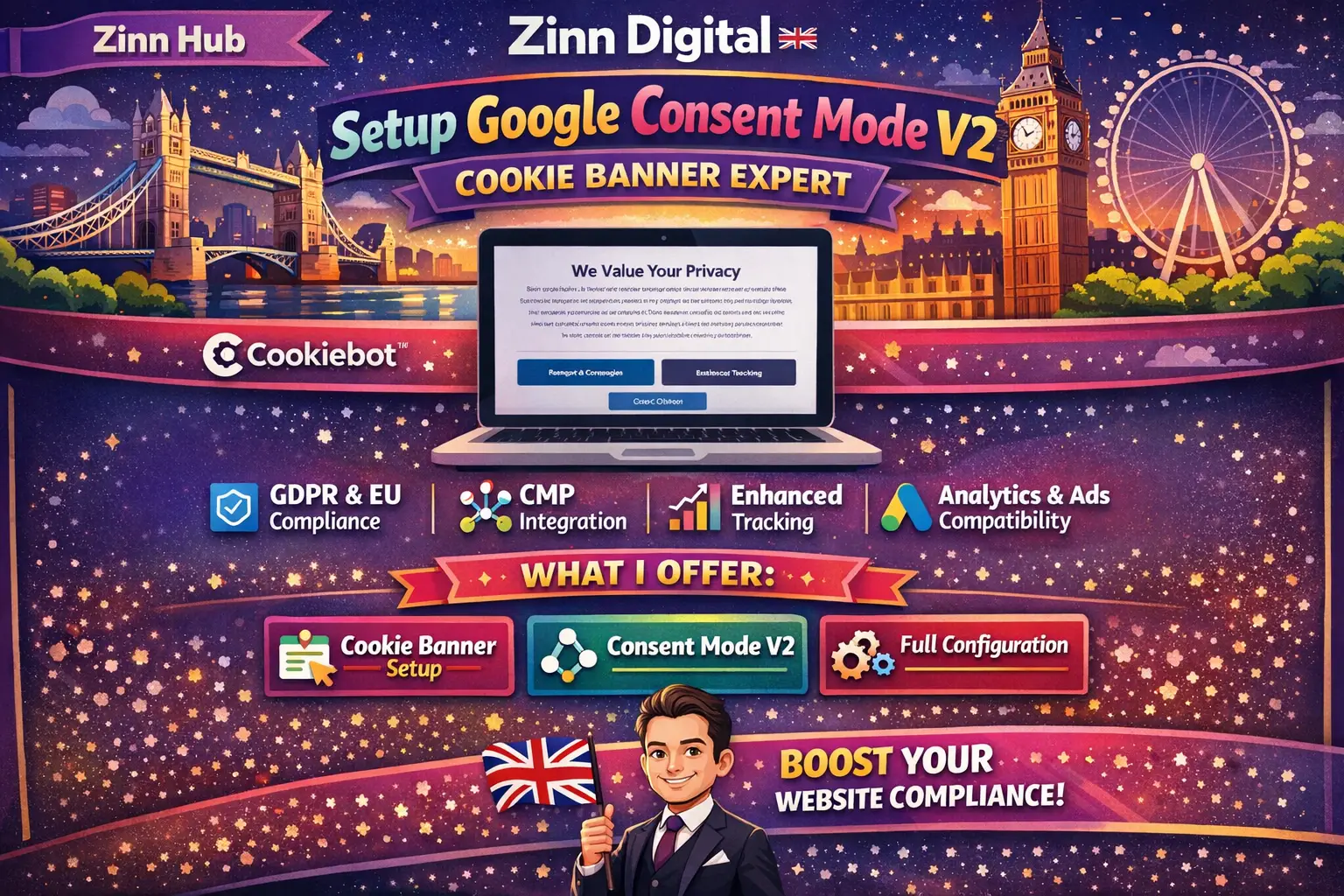 I specialise in the seamless integration of Consent Mode V2 and cookie consent banners through Google Tag Manager.