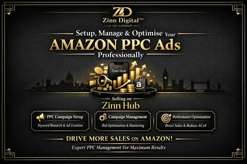 **Amazon advertising** is essential for ***boosting sales, visibility, and brand value***. While creating, managing, and optimising these ads can be challenging, Zinn Digital™ excels at developing campaigns that deliver results. We begin by establishing clear objectives, whether increasing sales, reducing advertising costs (ACOS), or positioning your product on the first page of search results.