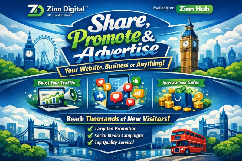 • We will advertise your website, product, video or anything across all social media platforms + publish adverts on news sites.