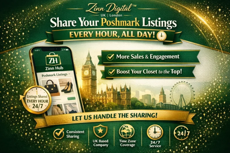I will share your listings every hour 5 days | Top Rated on Zinn Hubr Your Trusted Writer and Poshmark Manager