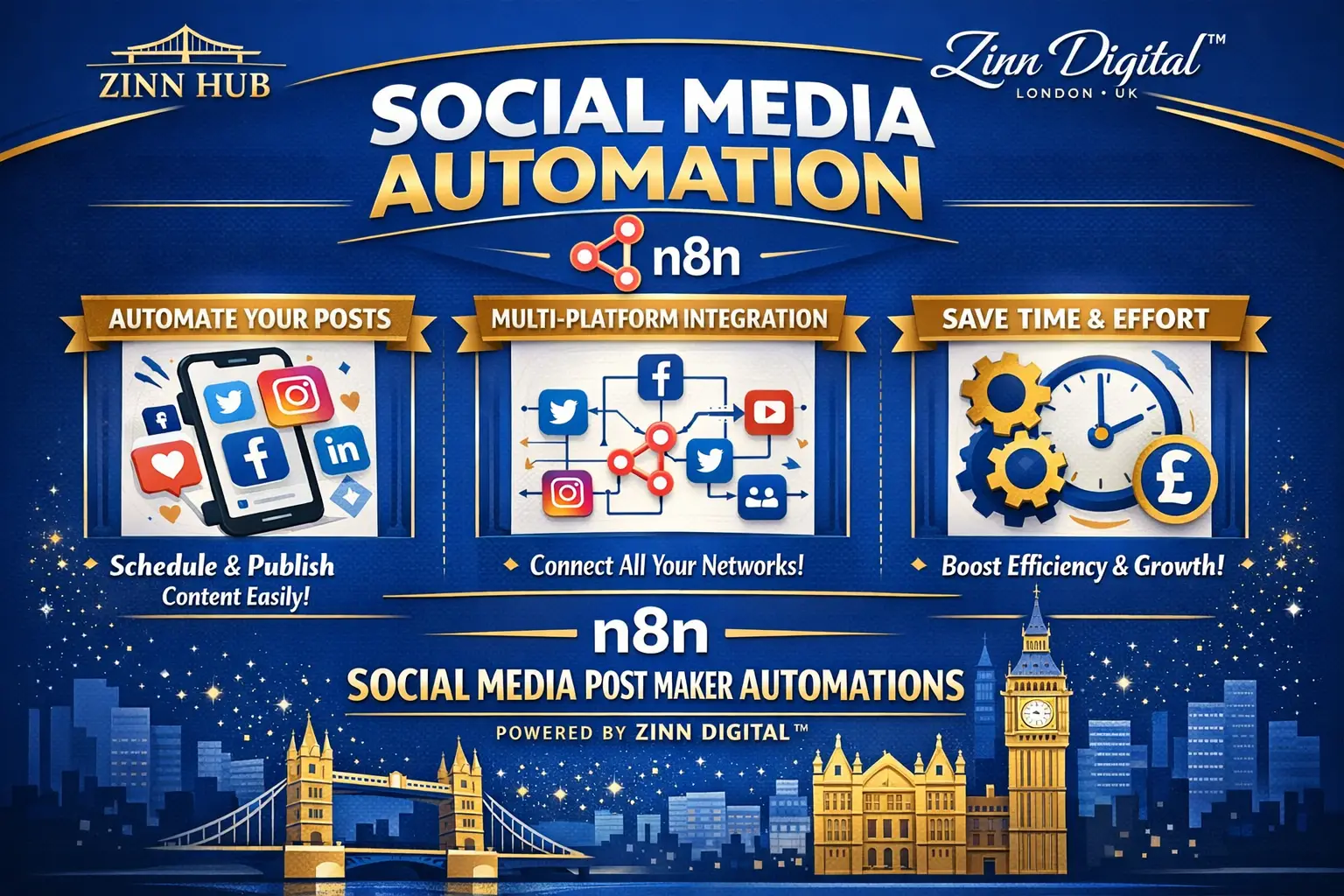 Zinn Digital ™ will build a custom Make com automation system that transforms your entire content process into a smart, AI-driven workflow. From content creation to scheduling and posting, everything runs automatically across Instagram, Facebook, LinkedIn, TikTok, X (Twitter), YouTube, Pinterest, or WordPress, saving you hours every week.