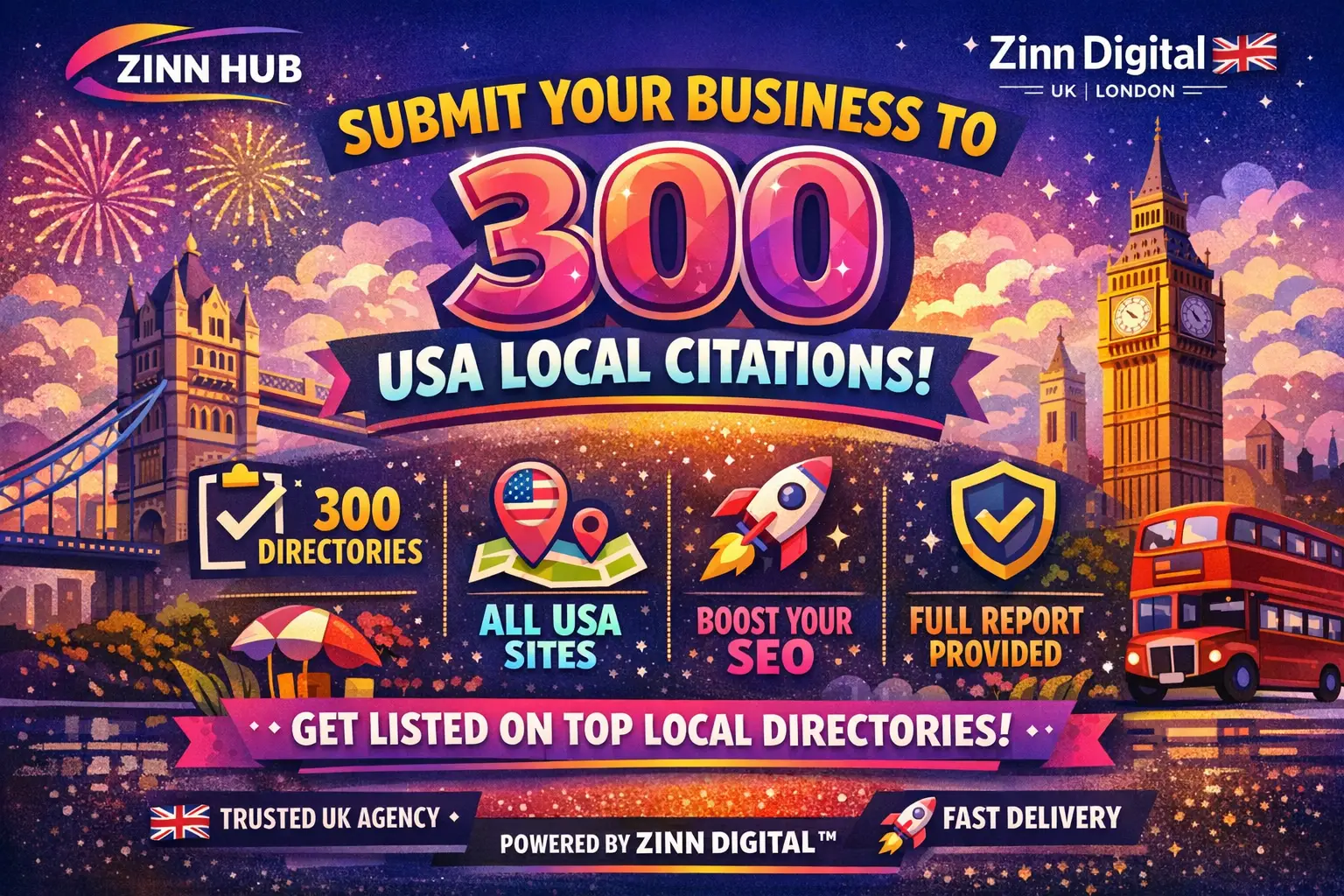Submit your business to 300 USA local citation directories with Zinn Digital™