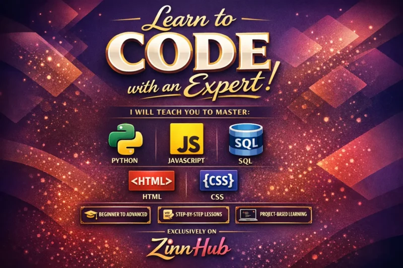 Zinn Digital ™ offers personalised coding lessons in Python, JavaScript, SQL, HTML, and CSS. Our bespoke approach ensures you learn efficiently and enjoyably.