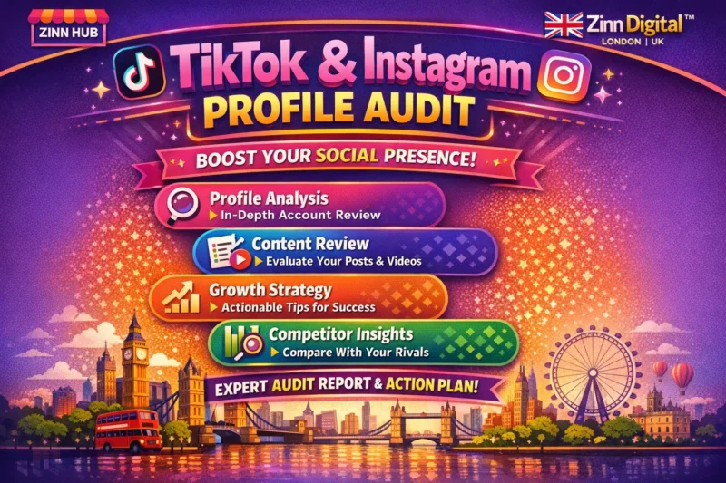 Struggling to grow on TikTok or Instagram despite all your efforts? Low views making you reconsider your strategy? Don't give up yet! Allow Zinn Digital ™ to perform an in-depth audit of your social media presence and unlock the keys to enhanced engagement and growth.