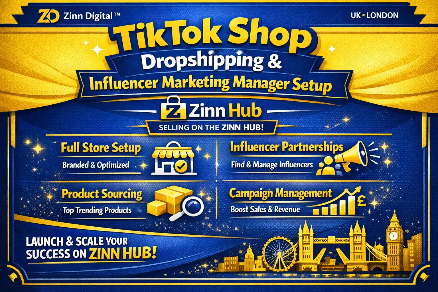 Are you looking to tap into the power of TikTok Shop Dropshipping and Affiliate Marketing to boost your brand and sales? You're in the right place. Zinn Digital ™ specialises in setting up TikTok Shops that convert, managing your affiliate programme, and creating a solid foundation for long-term success