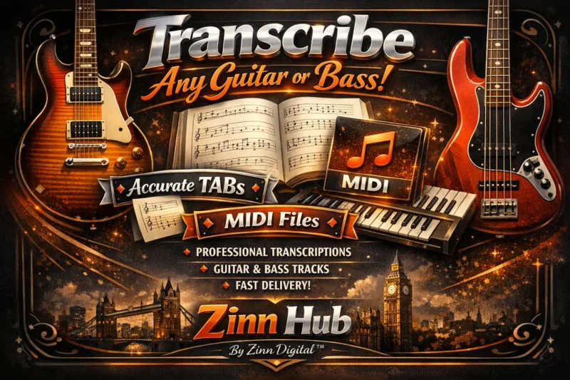 Hello, my name is Zinn Digital ™ and I would like to offer you my expertise in quick, detailed and efficient music transcription. With several years' worth of tabbing, arranging and ear practice, based in London, England, I can help you figure out any guitar-driven piece you may be struggling with (drums, piano and vocal parts are also fair game).