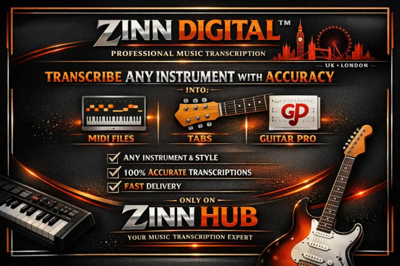 Based in London, England, Zinn Digital ™ provides professional music transcription services on Zinn Hub with meticulous attention to detail and quick turnaround times.