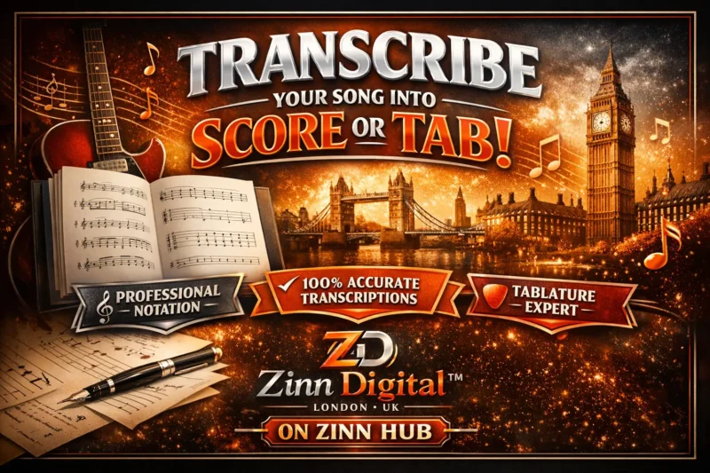 We are Zinn Digital ™, professional composers and guitarists with many years of experience in the music field, based in London, England. Over time, we've developed a keen ear for melodies, harmonies, and rhythms. **We only get satisfied clients - check our reviews to see what clients say!**