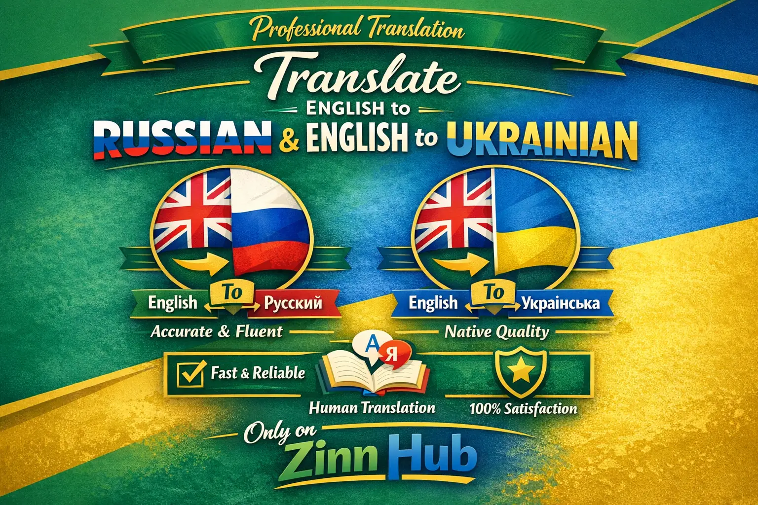 We're Zinn Digital ™, your go-to Ukrainian translator and Russian translator for professional and accurate translation. We translate English to Russian, English to Ukrainian, Russian to English, and Ukrainian to English.