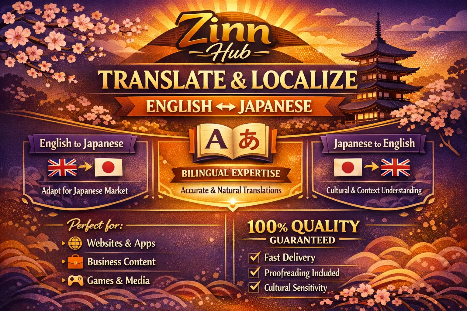 Hello! I'm a native Japanese speaker based in London, England, offering professional English to Japanese and Japanese to English translation services through Zinn Digital ™.