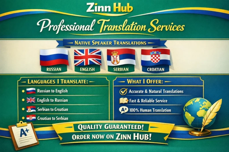 A NATIVE English/Russian/Serbian/Croatian polyglot with a MA and PhD degree in the field of LINGUISTICS AND TRANSLATION. Zinn Digital ™ has been working as a translator/proofreader/interpreter for over 9 years, hired by non-governmental organisations, large companies based in London, England...