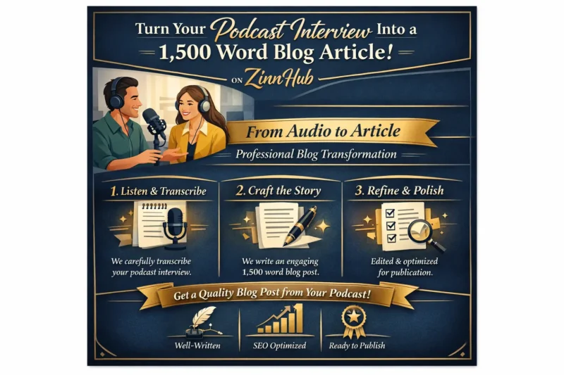 We will take a podcast interview from YouTube or Spotify and write up a 1-1,500 word article/summary