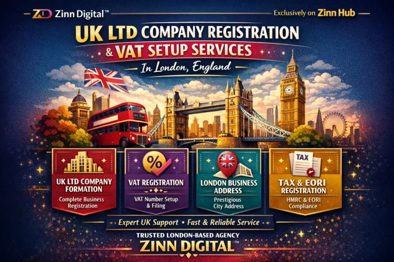 Hello, I'm from Zinn Digital ™, your trusted UK Ltd company registration specialists based in London, England. Whether you're a UK or non-UK resident, we'll handle your successful company registration and provide comprehensive services including VAT registration, UTR and EORI number acquisition, obtaining authentication codes and activation codes for corporation tax, plus filing company accounts and confirmation statements. With our extensive knowledge and experience, we ensure your business is established and compliant with all UK regulations efficiently and accurately.