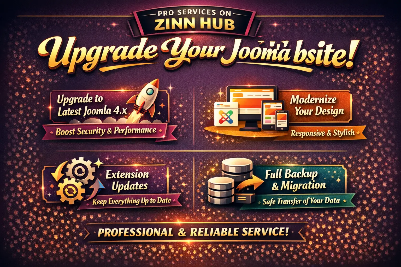 Zinn Digital ™ will professionally upgrade your site regardless of its current Joomla version to Joomla 5.x, including: