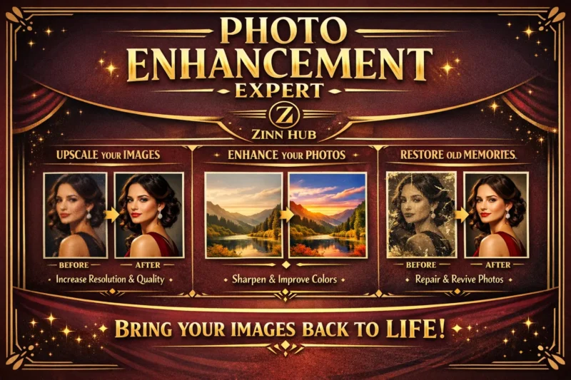Welcome to my Zinn! I'm from Zinn Digital ™, with 18+ years' experience as a graphic designer based in London, England. I will professionally upscale, enhance and repair your photo.