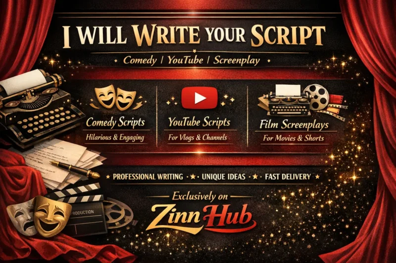 Hello, I am Zinn Digital ™ and a professional comedy writer, script and screenwriter based in London, England. I've been writing comedy scripts for approximately half a decade and worked with YouTubers, content creators, indie filmmakers, stand-up comedians, and people worldwide. I'm available to write personalised comedy materials of your choice.