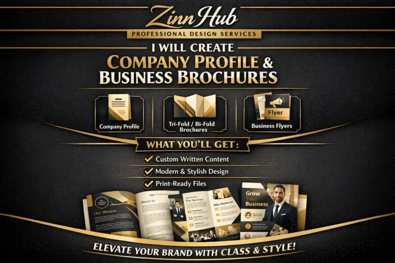 write and design a company profile, business flyer, trifold or bifold brochure