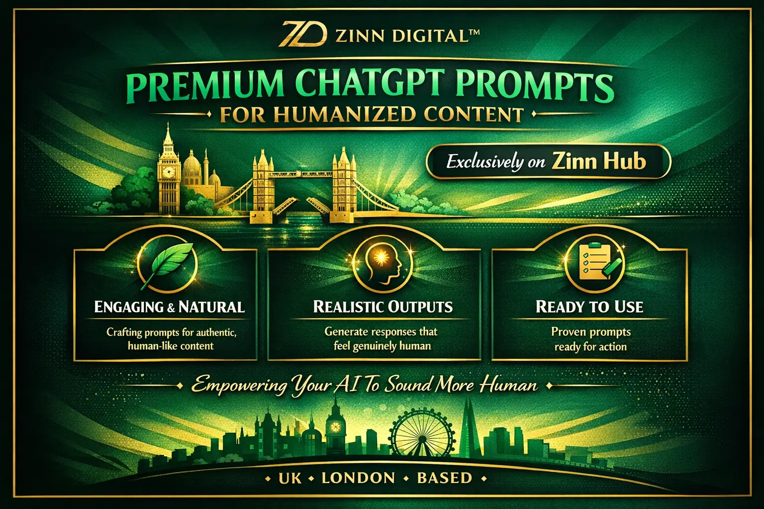 With more than 30 years of professional writing experience and over 5,000 completed Zinn Hub orders, Zinn Digital ™ writes prompts that help ChatGPT produce sharp, effective marketing content straightaway. Based in London, England, we understand voice, tone, rhythm, and structure, and we use that to build prompts that work.