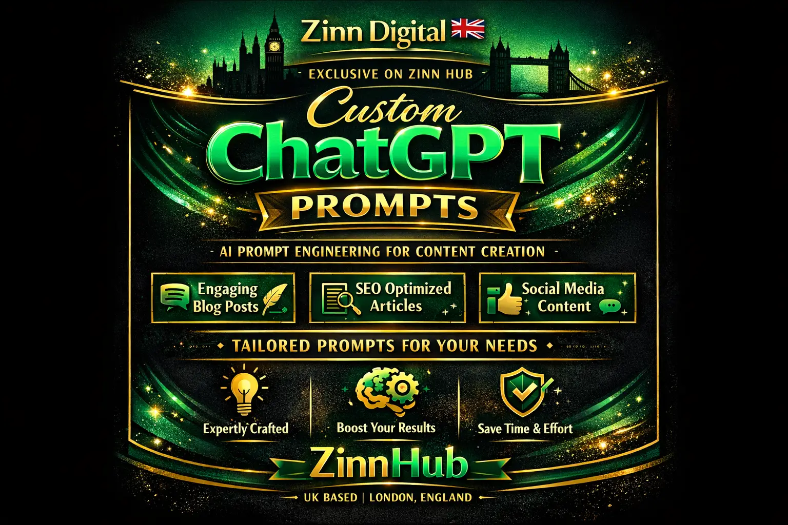 Ready to elevate your content? Imagine having a ChatGPT prompt that's perfectly tailored to your voice, style, and audience. That's exactly what Zinn Digital ™ offers—custom prompts designed to supercharge your content creation.