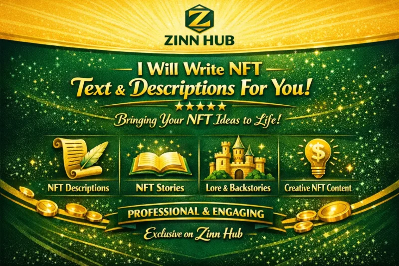 I will craft compelling text for your NFT project, including product descriptions, character backstories, client messages, or any other content you require. With extensive experience working on numerous NFT projects over recent months and years of professional writing expertise, our London-based team at Zinn Digital ™ is perfectly positioned to elevate your project. We'd be delighted to collaborate on your upcoming venture, so please get in touch to discuss your requirements.