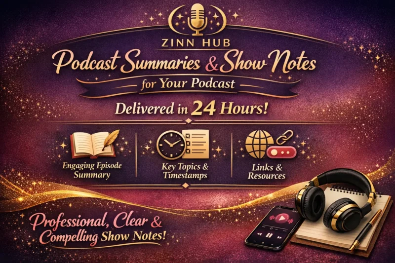 Elevate your podcast with captivating summaries and show notes. Contact Zinn Hub today!