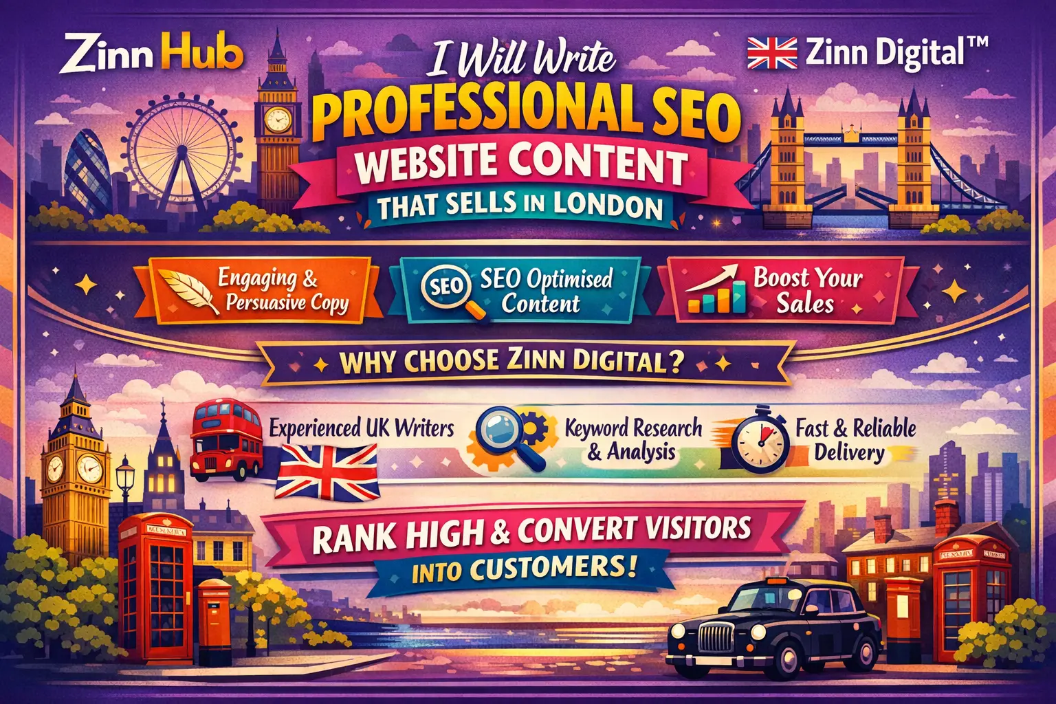 We'll provide you with SEO-optimised, professionally written, market-researched content. Zinn Digital ™ does all the work so you don't have to. We're published authors, website developers/content writers and consulting business owners who work with large corporations down to small local companies in London, England.
