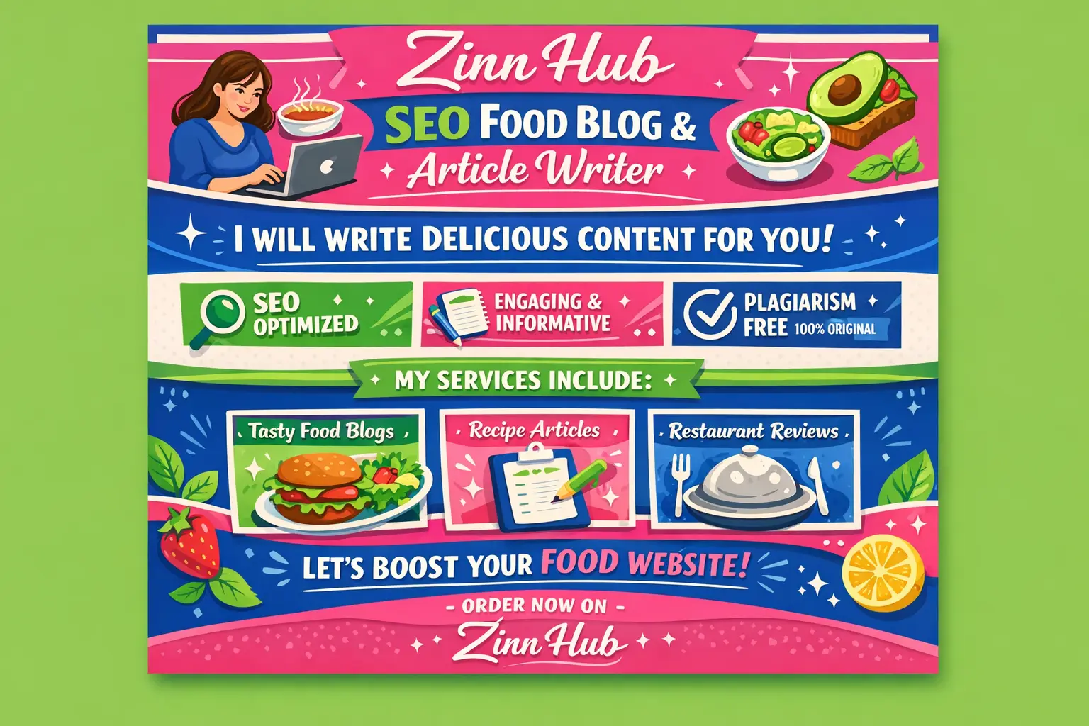 write SEO food blogs and articles as your content writer