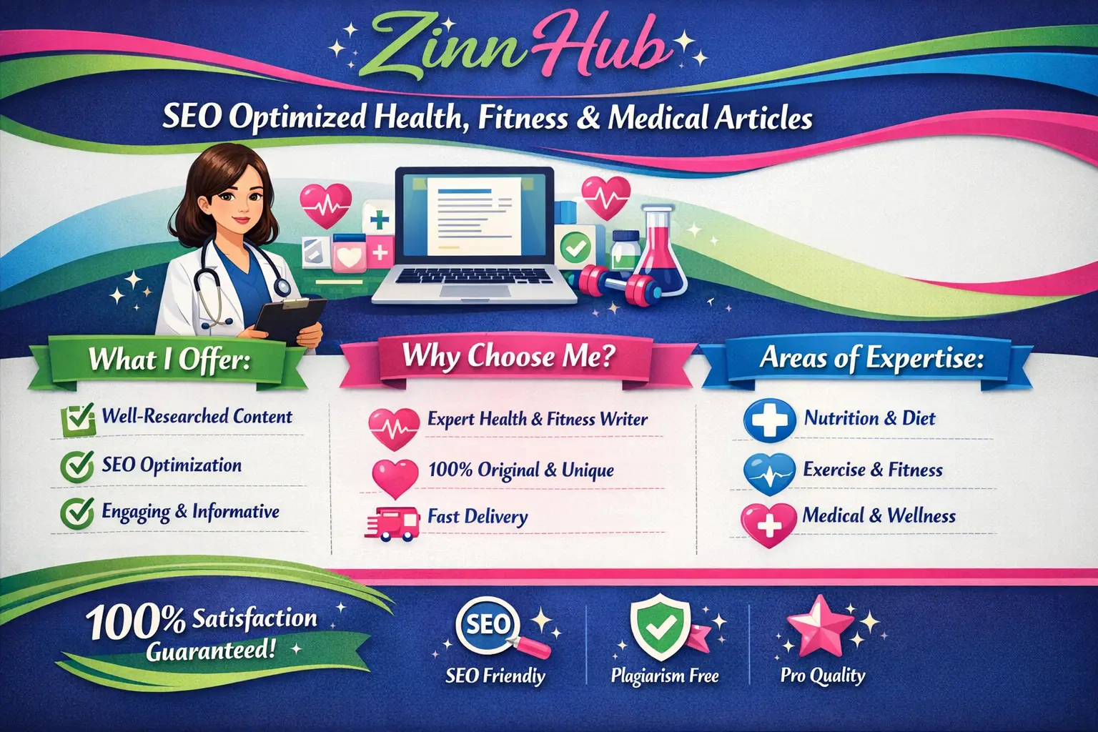 write SEO optimized health, fitness, and medical articles