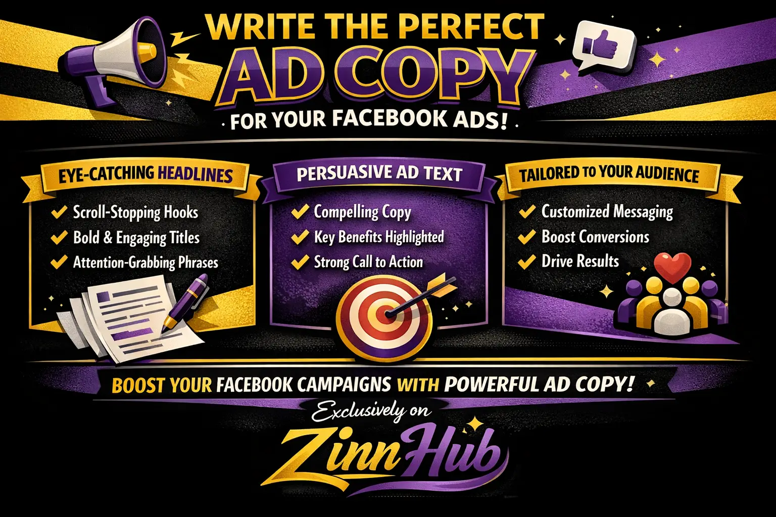 Unfortunately, even the best ad copy does NOT guarantee conversions. There are many other important factors such as your niche, your website design, your right audience, your facebook ad image, etc.