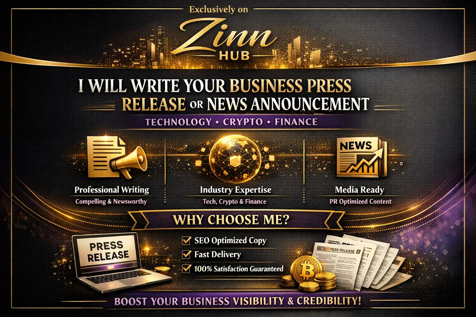 write your business press release or news announcement technology crypto finance