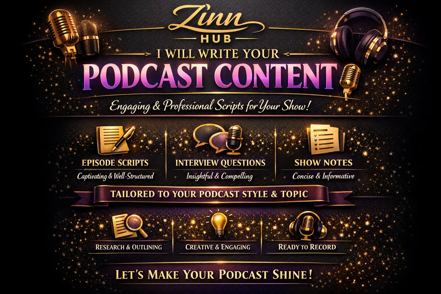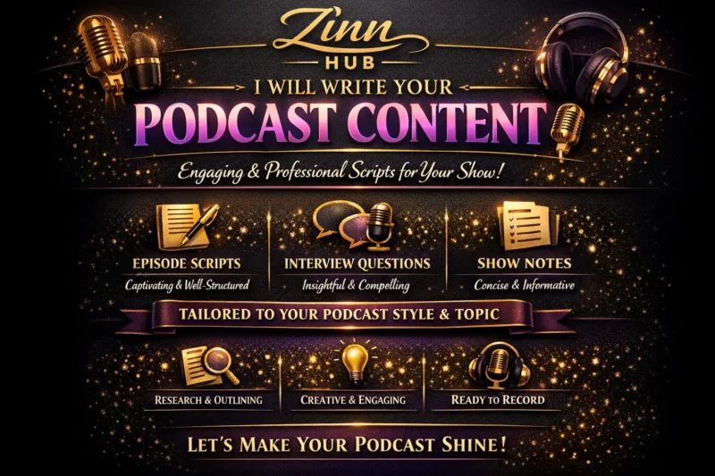 Zinn Digital ™ can write a professional script for you that will cover any topic you wish, keeping your listeners engaged and entertained throughout.